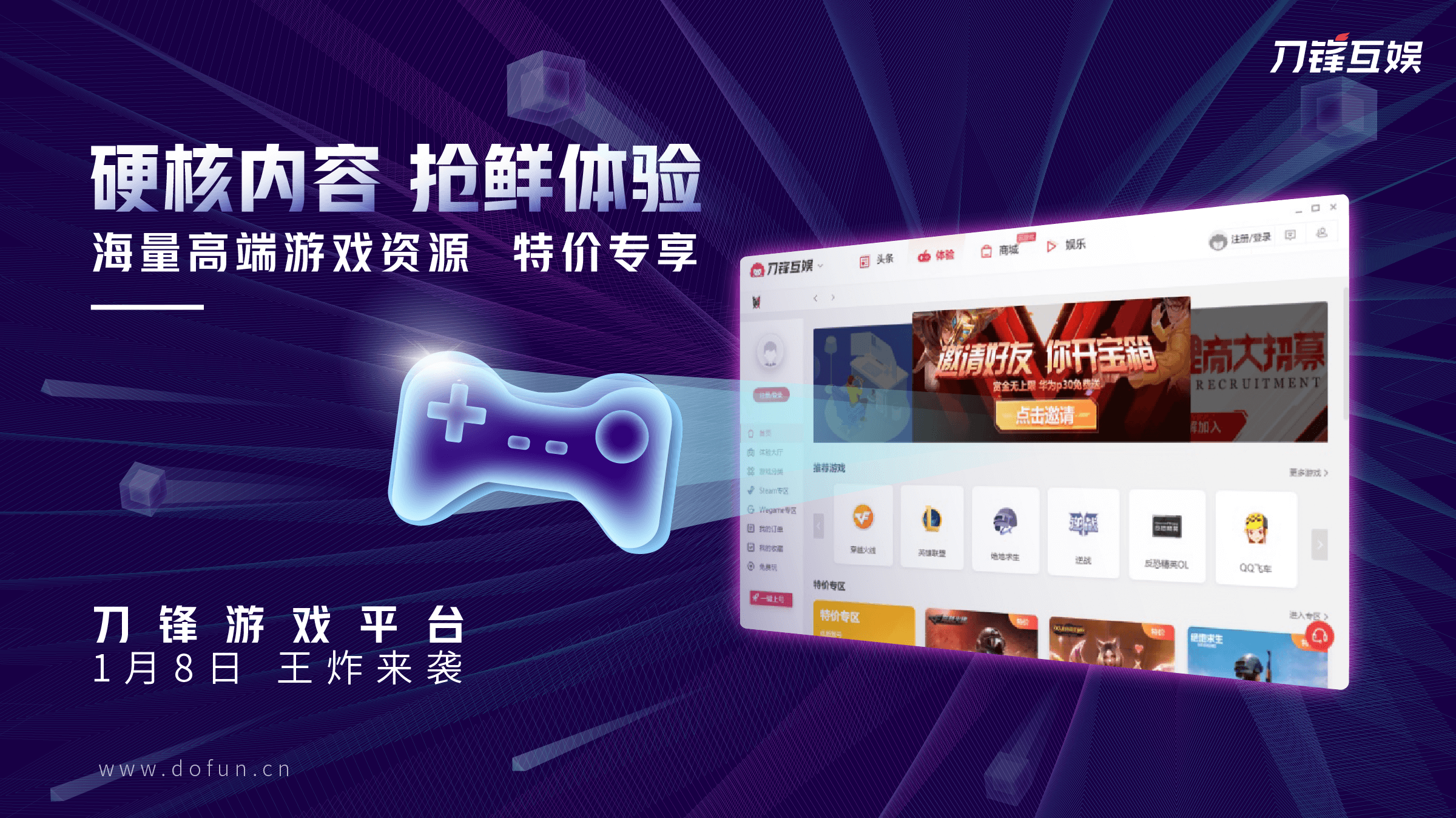 2020新年伊始,国内知名游戏服务品牌——刀锋互娱推出了旗下重磅产品“刀锋游戏平台”,这款国内新兴的综合游戏体验平台,囊括了高价值游戏内容体验、正版游戏商城、云游戏、头条资讯、娱乐社交五大核心功能,覆盖玩家绝大多数游戏场景,让亿万玩家轻松体验高品质游戏内容、游戏社交,享受极致的游戏乐趣。